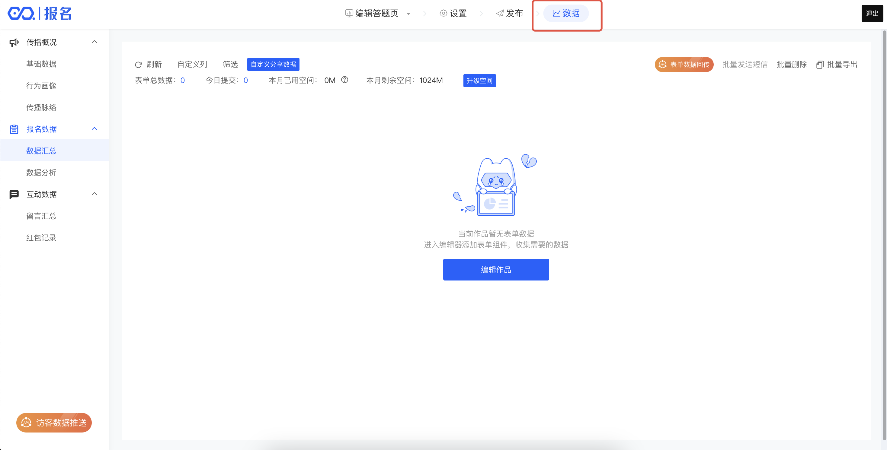 方式二:点击具体作品,进入编辑器,点击【数据】进入数据后台,也可以查看到明细数据。