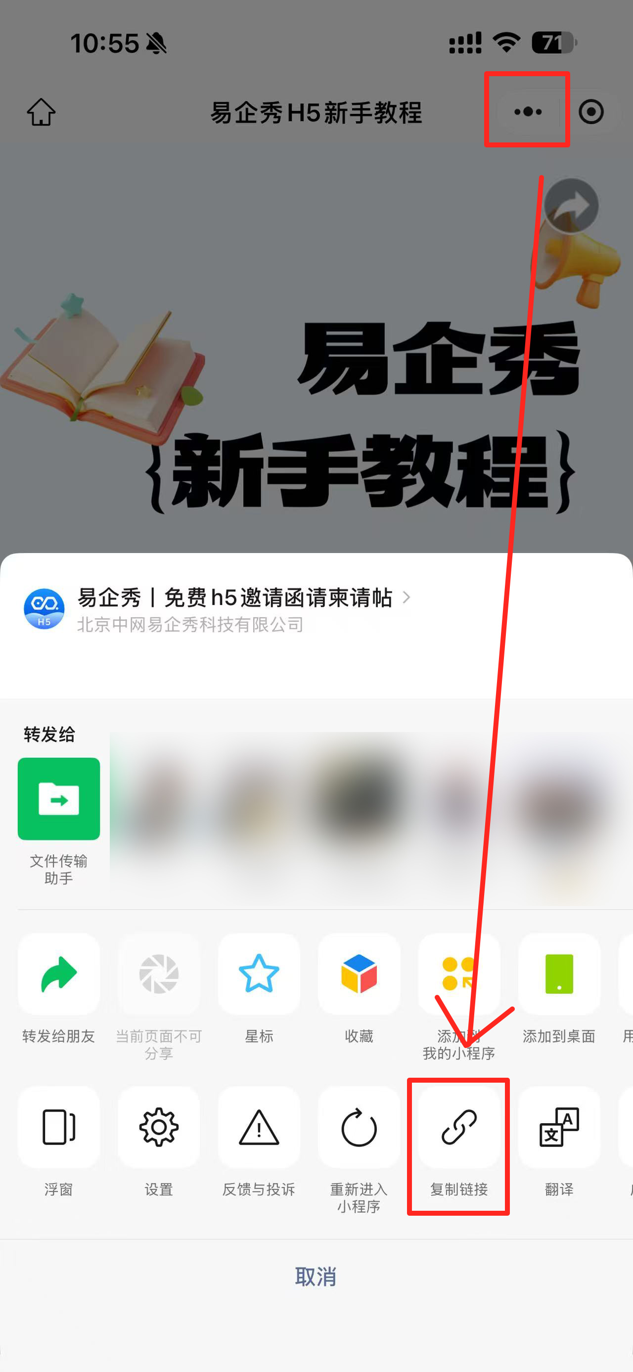 8、在易企秀作品发布页,复制小程序路径