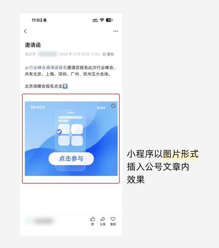 小程序以图片形式插入公众号文章预览效果: