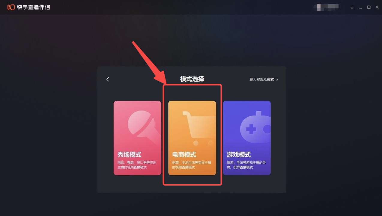 1、当前互动连接方式只支持【电商模式】场景直播,需在【快手直播伴侣】创建直播时选择【电商模式】。