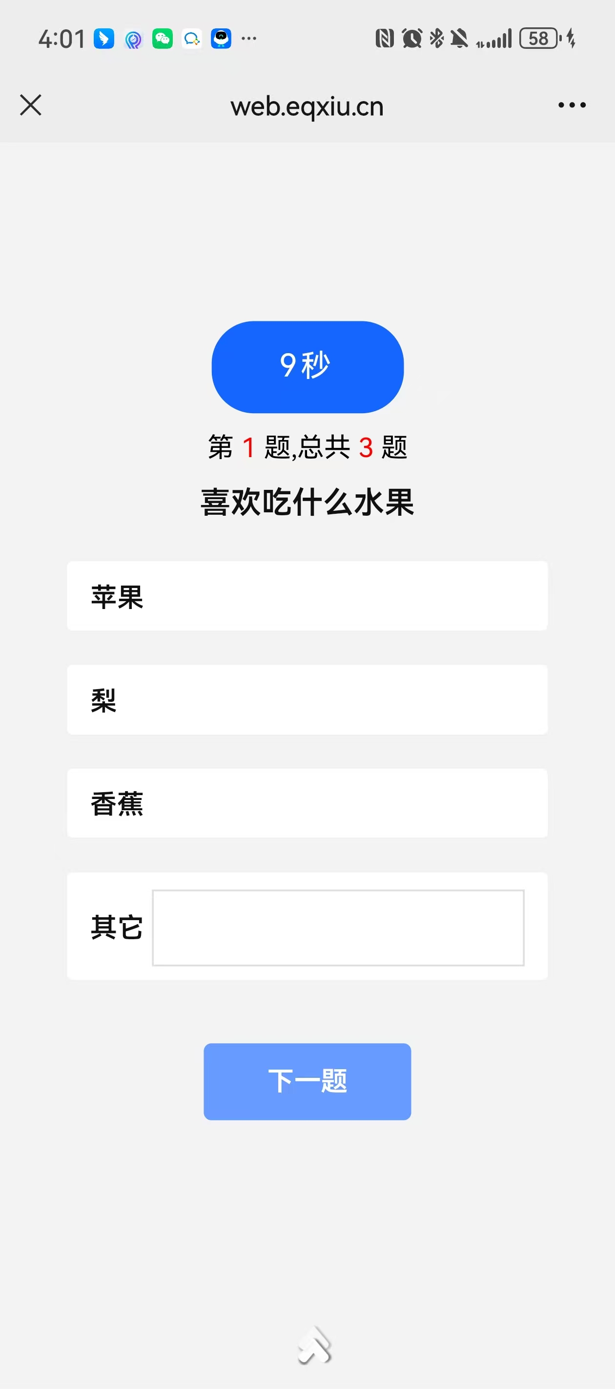 H5答题组件中新增了“其他”选项和跳题规则,满足更多应用场景和用户需求。