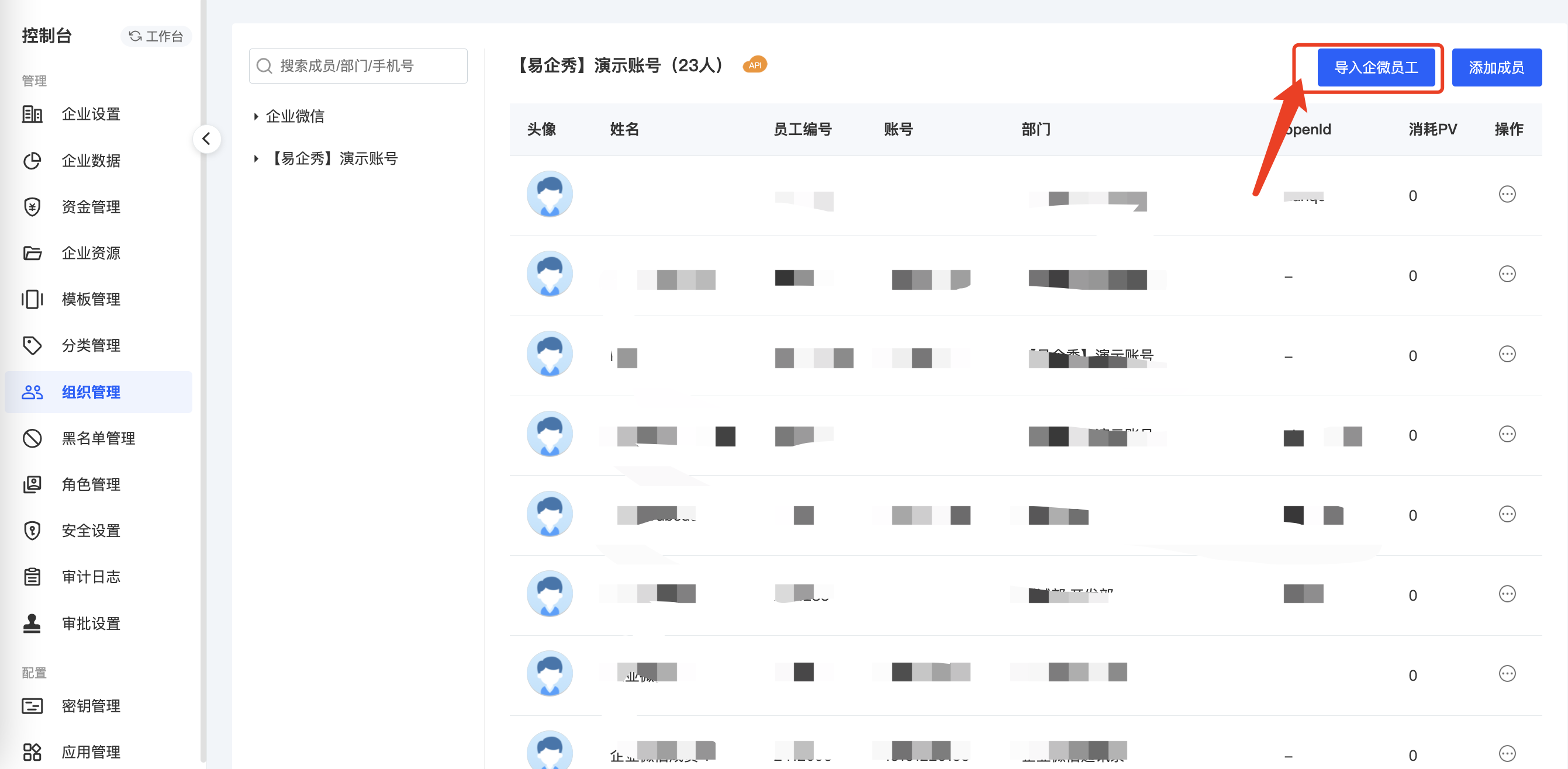 步骤③:组织管理-导入企微员工