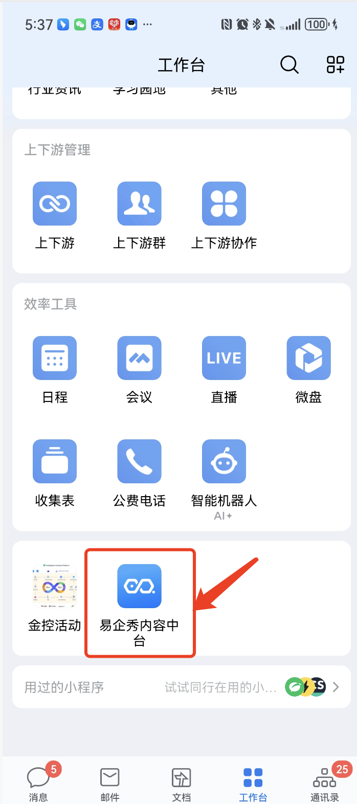 步骤④:企微工作台查看易企秀内容中台应用