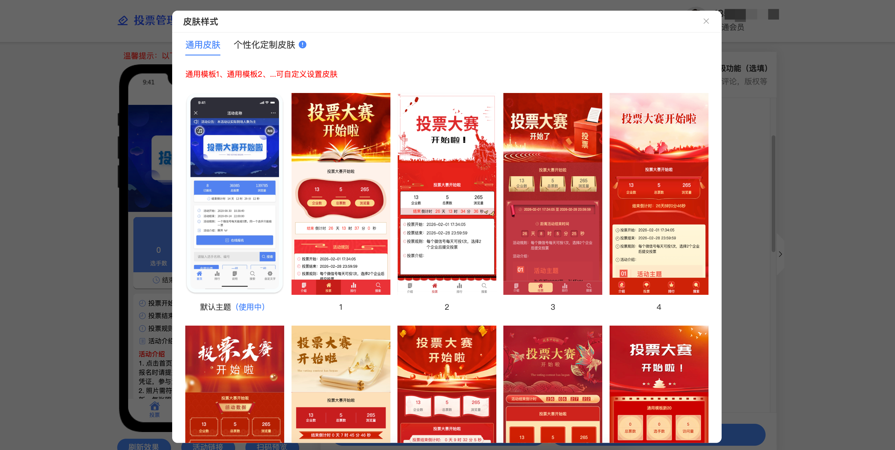 3)3000+精美投票模板,全面覆盖优秀人物评选、先进团体投票、书画作品评选、少儿才艺评选、摄影大赛、广场舞大赛、门店陈列大赛、年度评选、节目评选、校园投票、廉洁宣传、萌宝评选等各种投票场景之外,也让活动页面足够酷炫!