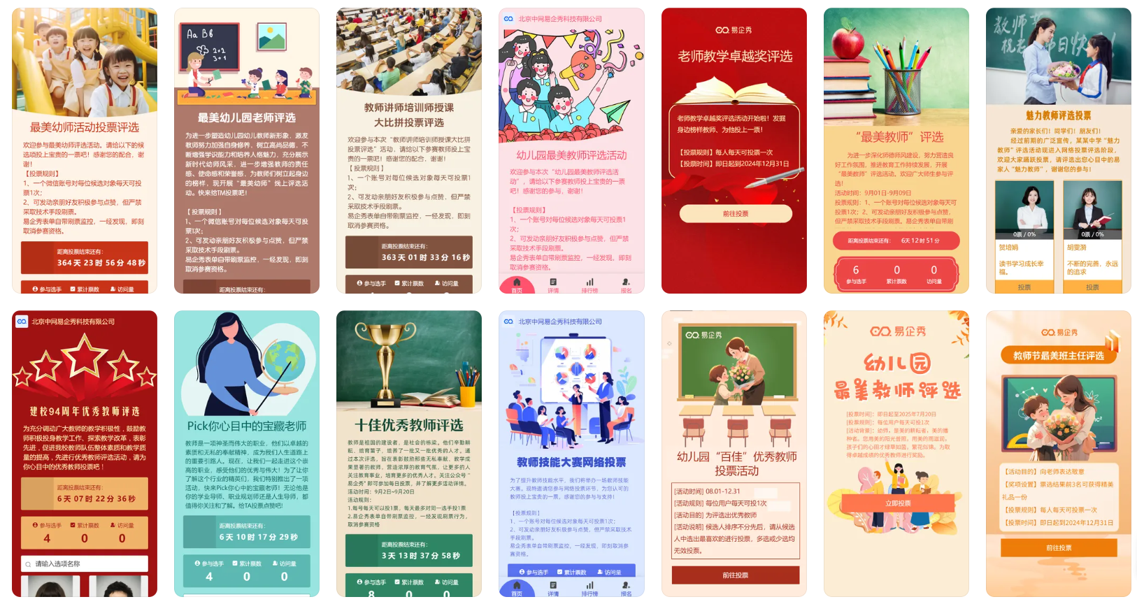 第四,展示形式要丰富。教师风采展示需要图片+文字简介,学生才艺比拼需要视频支持,单一的文字投票早已无法满足需求。