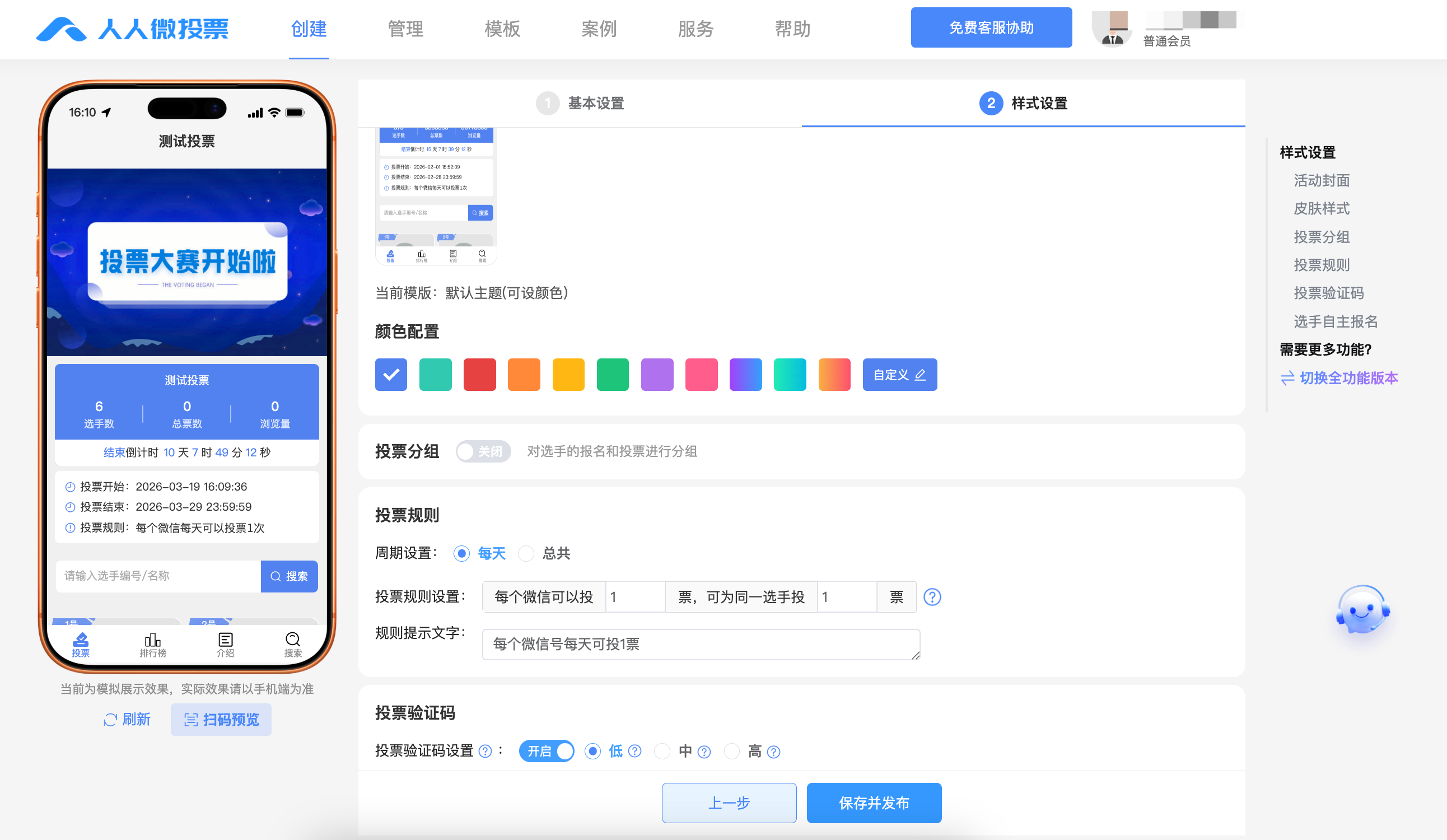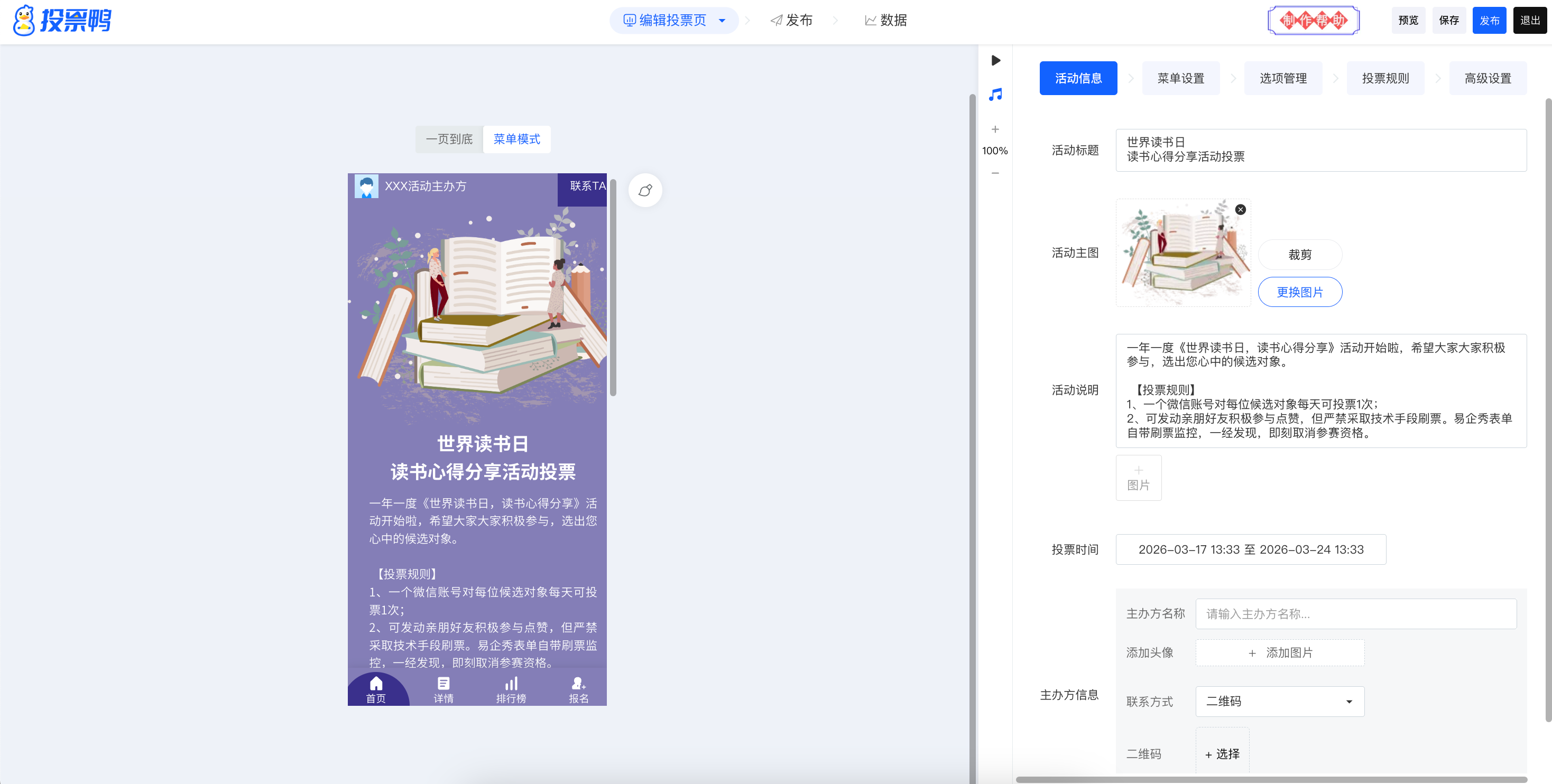 1文案修改包括投票活动主题活动说明直接修改左侧预览内容可以直接看到效果