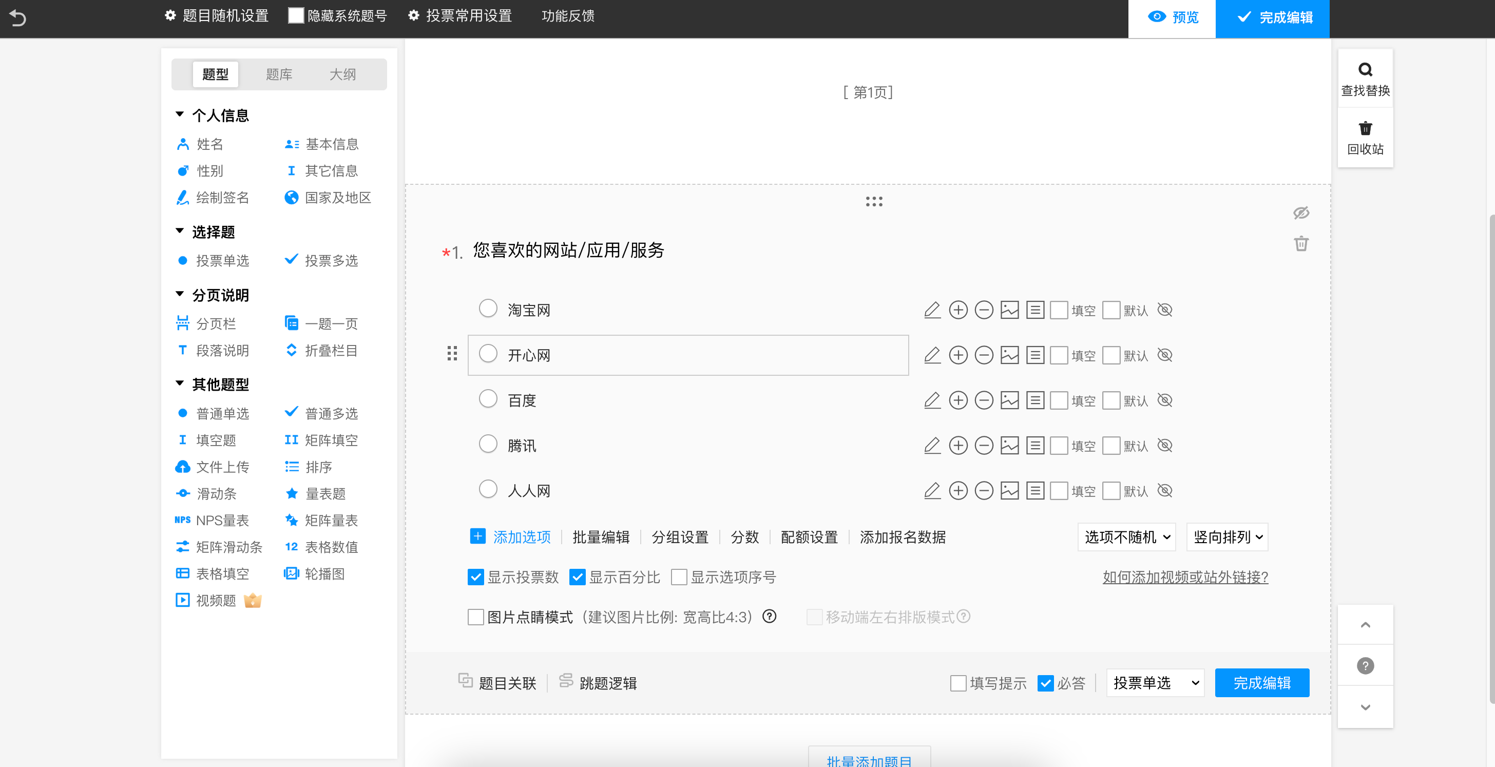问卷星问卷领域毋庸置疑领头羊投票场景没有视觉精美效果没有进行针对性优化可能对于经常使用问卷来说可以轻车熟路完成投票制作对于新手而言操作难度