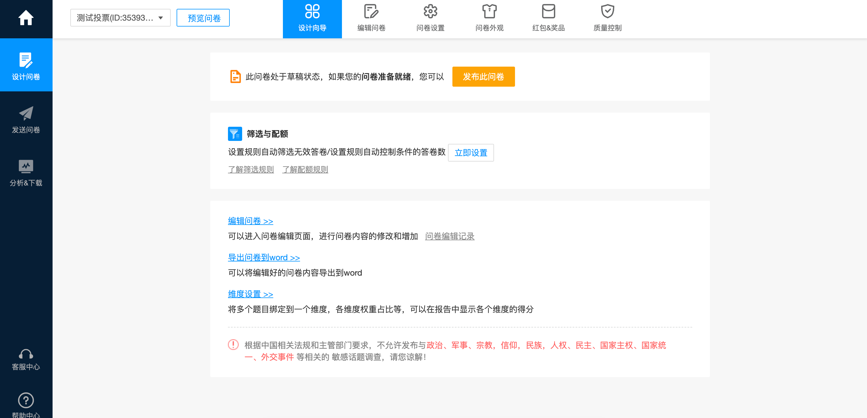 完成编辑可以发布投票界面进行问卷设置发布此时困惑投票活动怎么问卷