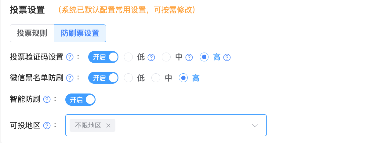 限制投票区域,可以让投票参与人限定在一定范围内,降低刷票的可能;